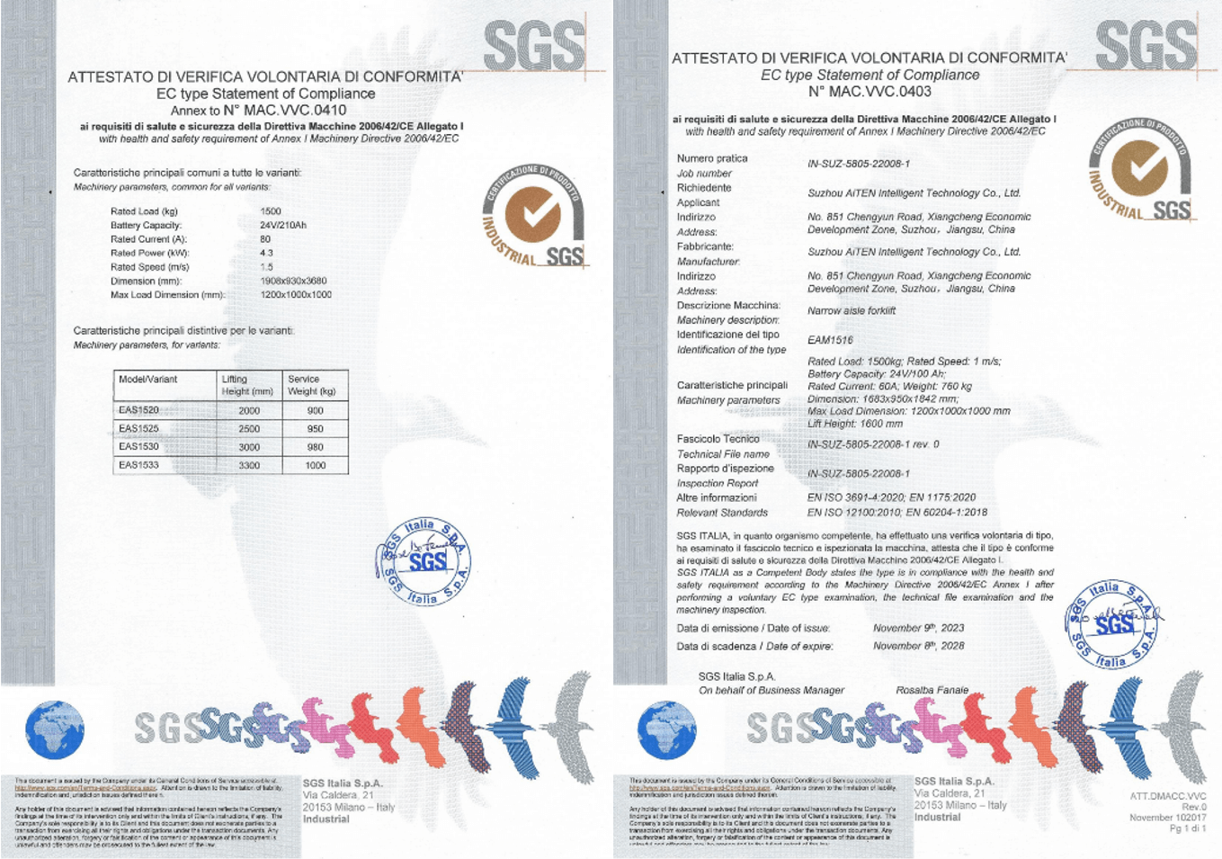 3. CE 标志(欧盟): 确保符合机械指令,强调对繁忙仓库等动态环境的风险评估,在这些环境中,叉车与行人和手动设备相互作用。为满足欧洲市场的法规要求,今年会产品经过严格审核,为包括 MP10、AM1516、AE15、AS15 和其他产品在内的 AGV 产品获得了欧盟 CE 证书。